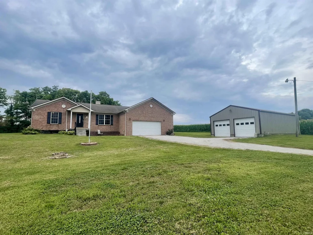 Discover the perfect blend of country living and convenience with this property located just minutes from Spencer and Martinsville, 20 minutes from the south side of Indianapolis, and 45 minutes from Bloomington. This home features an open floor plan with a split-bedroom design, vaulted ceilings, and a charming brick fireplace. The front windows provide picturesque views of the yard and the farmland across the street. The main level offers three bedrooms, two full bathrooms, a dining area, kitchen, spacious laundry room and an office or multipurpose room. The lower level includes a full bathroom, and additional office or study, and abundant unfinished space with endless possibilities for customization. In addition to the attached two-car garage, the property also includes a 36' x 24' outbuilding, ideal for storage or hobbies. All of this is nestled in a serene country setting-peaceful, private, and inviting.
