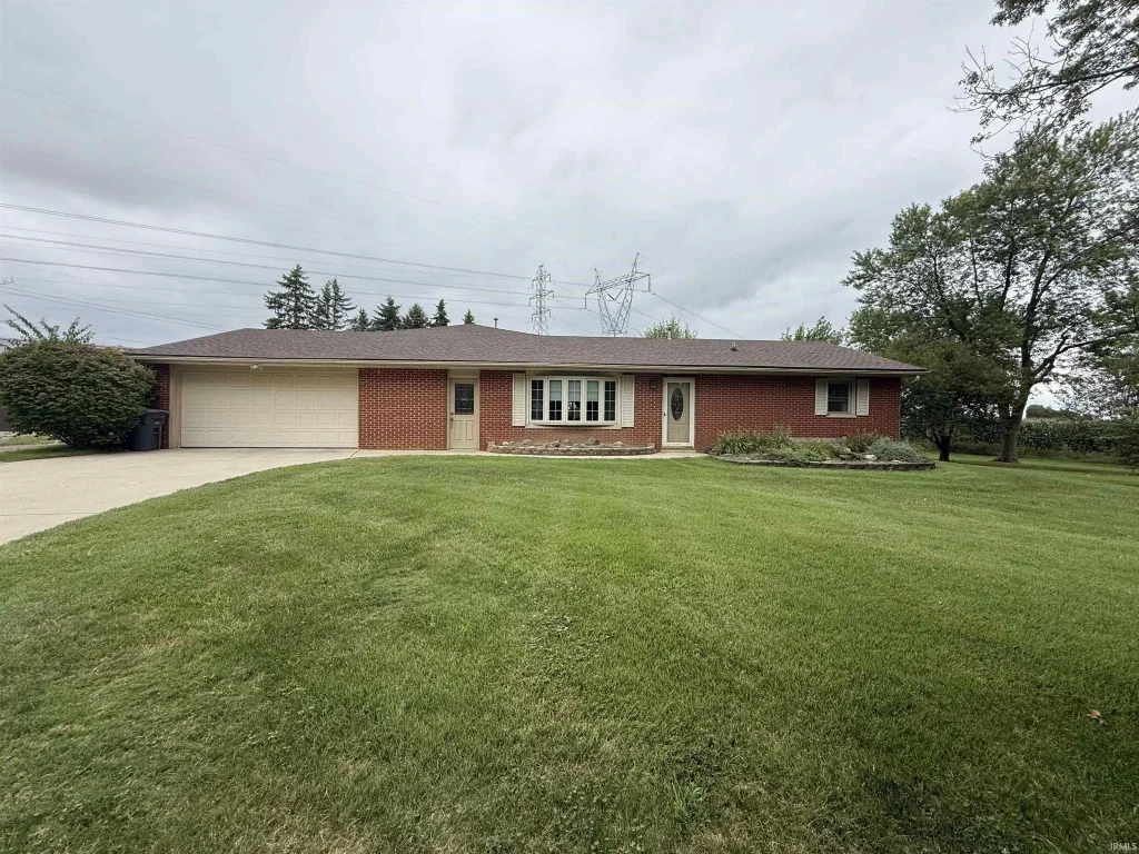 Charming 4-bedroom, 2-bath ranch home on a spacious corner lot! Set on just over half an acre with farm field views, this property features fruit trees, and a large three car detached garage. Inside, enjoy a cozy wood-burning fireplace in the oversized family room and a large eat-in kitchen attached to another family room. Recent upgrades include a new bathroom with tiled shower and vanity and a new roof in 2023. Country feels just minutes away from Muncie's shopping, restaurants, and amenities.